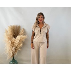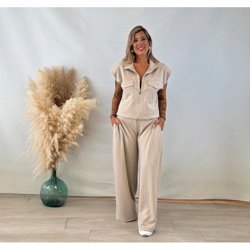 Conjunto sport cremallera beige