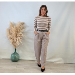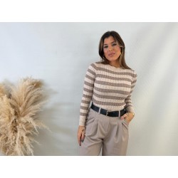 Jersey rayas canalé beige