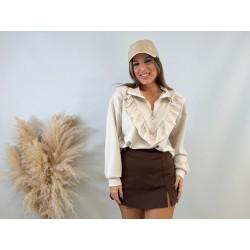 Sudadera volante beige