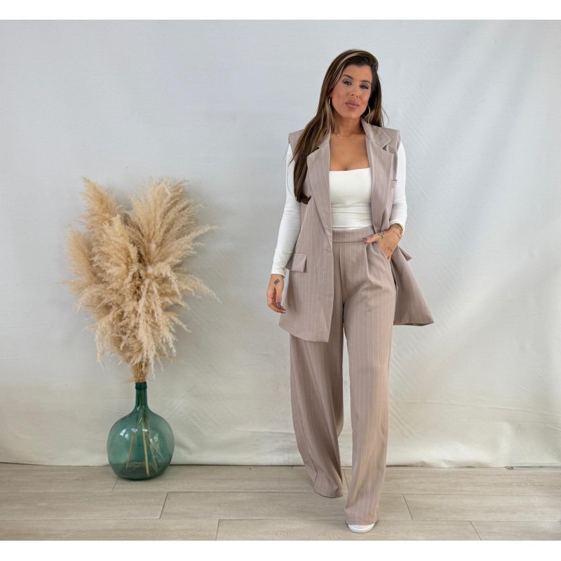 Traje chaleco rayas taupe