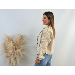 Gabardina bordada beige