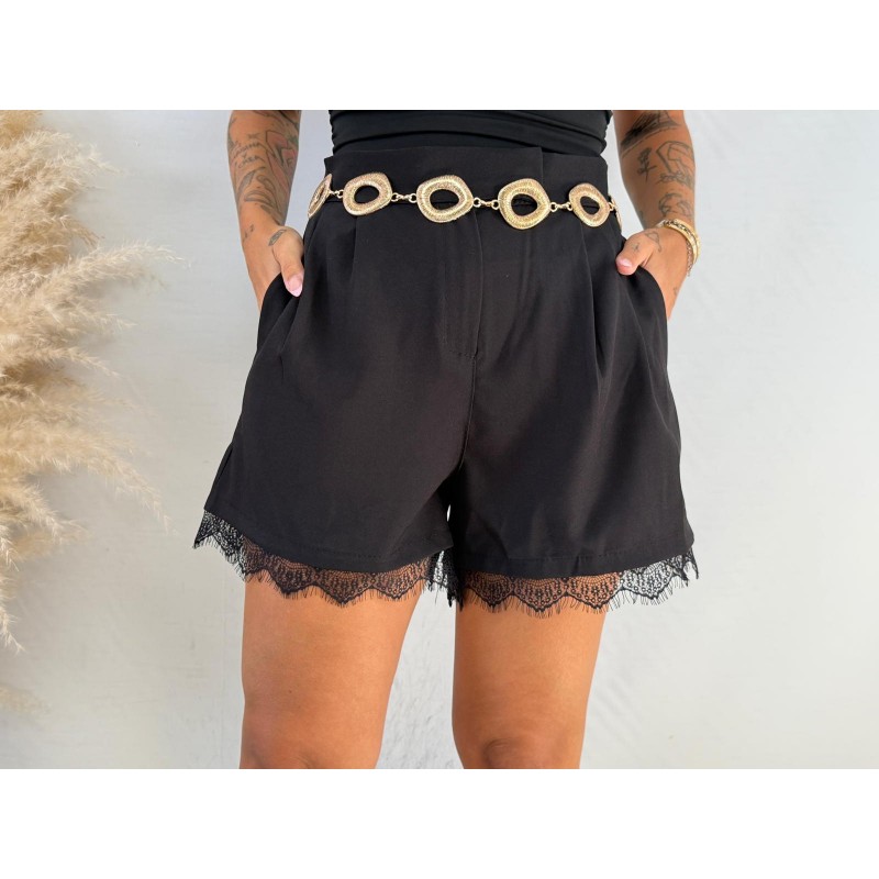 Pantalón pinza encaje negro