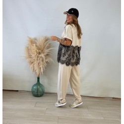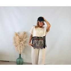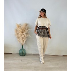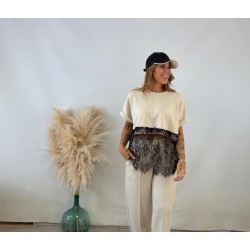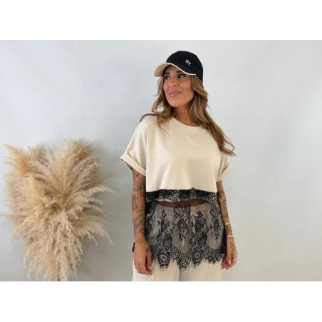 Camiseta encaje beige