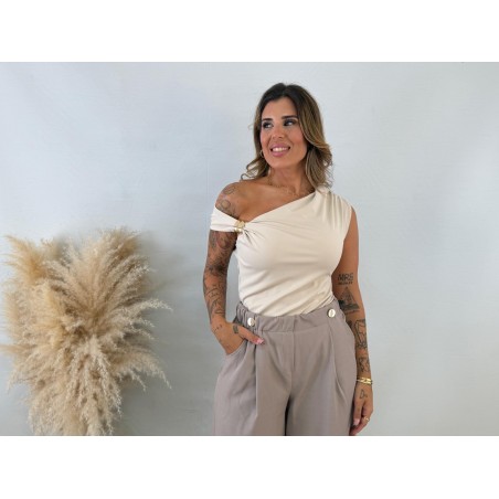Camiseta broche beige