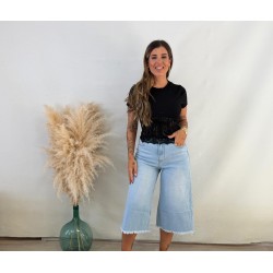 Camiseta encaje canalé negra
